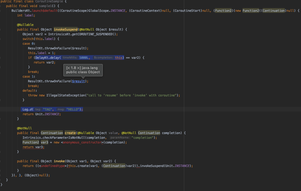state machinefor you - With this state machine, everytime you invoke a suspend function, this suspend function can be paused at any point of time, and later point can resume with switch statement
